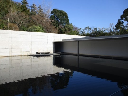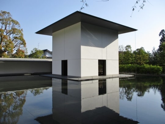 水鏡の庭に佇む白い建物は「思索空間」と名付けられた静寂の空間です。