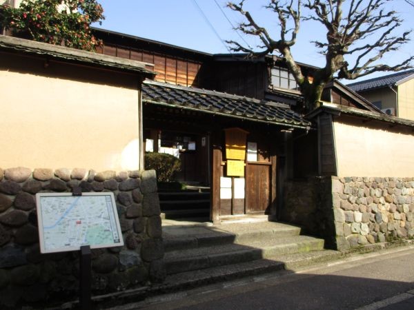 寺島蔵人邸は幹線道路の百万石通りから1本入った通りにあり、老舗の和菓子屋さん「森八」の裏手に位置しています。閑静な住宅街に佇む立派な門構えの家屋ですので、見過ごしてしまうことはないと思います。
