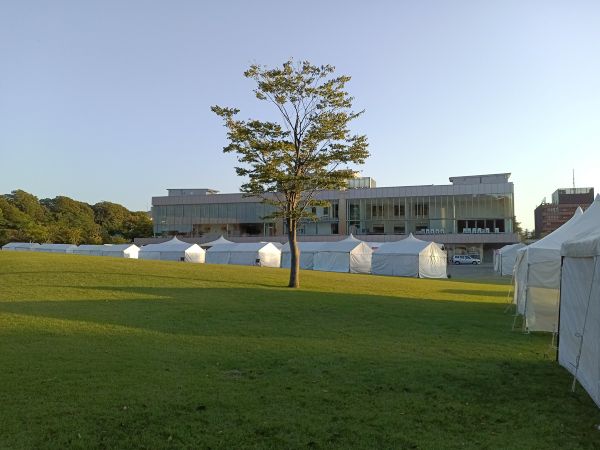 涼しくなると、金沢の街中では屋外イベントが多くなります。中でも金沢城公園と金沢21世紀美術館の間に位置するしいのき緑地では、10月の週末に「サケマルシェ」「KOGEIフェスタ」「KANAZAWAおいしいフェスタ」が開催されました。