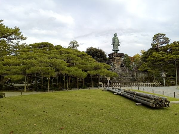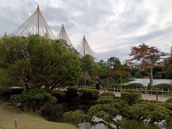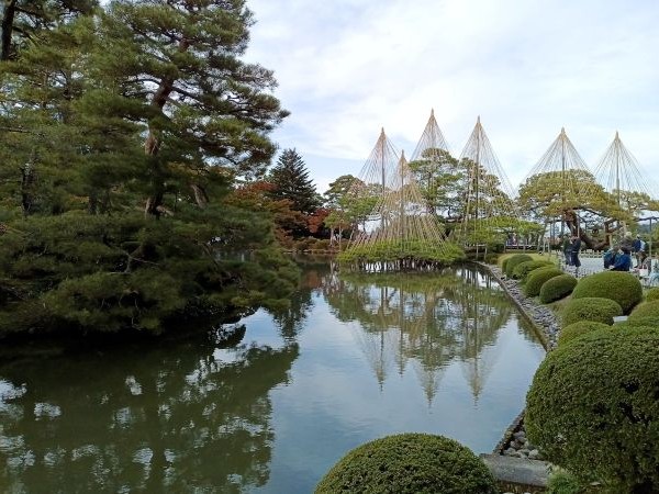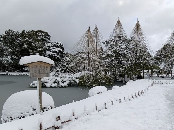 金沢では11月中に雪が降ることはまずないのですが、全体の作業が12月中旬まで続くことから作業開始日を11月1日としています。また、唐崎松が一番の撮影スポットであることから、観光客の方に向けて唐崎松が最初になっているのでしょう。