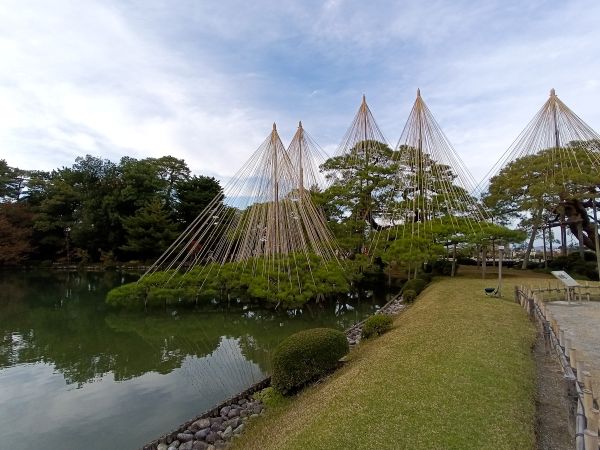 雪に縁のない地域にお住まいの方の中には、兼六園の雪吊りは年中装着されていると思われている方もいらっしゃるようですが、雪から松の木を守るために装着されるものですので、雪吊りが見られるのは冬の時期だけになります。