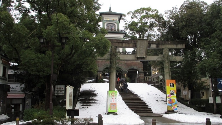 個性的な神門が参拝者の増加に効果があったのでしょうか。現代の金沢では最も初詣客の多い神社となっています。12月22日の北國新聞に、新年を前に尾山神社の神門のしめ縄が取り替えられたという記事が掲載されていました。