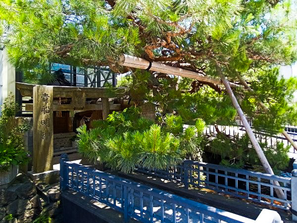 せせらぎ通りには神社があります。神社と言っても、神様を祀る殿舎が祠 (ほこら) と呼ばれるほどの小さな神社です。はじめて訪れる方は、用水サイドを注意して歩かないと通り過ぎてしまうほどです。